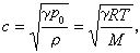设有一平面声波,在均匀、无损耗的理想气体媒质中传播,则声速с与气体特性参量的关系为