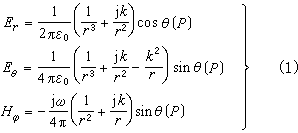 Eθ、Hφ、r(传播方向)彼此相互垂直并符合右手定则。这种场称为远区场。