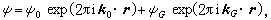 这里的波矢满足衍射条件,即kG=k0+G(G为倒易点阵矢量)。当入射束接近满足布喇格方程时,上式中只剩下对应于折射束和衍射束两项,即双束近似