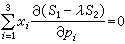 设有一定点P(p1,p2,p3),则P关于二次曲线束S1- λS2=0的极线方程是