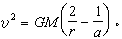 式中G是万有引力常数;M是地球的质量;r和v是人造天体相对于地心的位置和速度;a 是人造天体运动轨道的半长径。