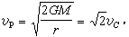 它称为逃逸速度或脱离速度。它的运动轨道是一个抛物线,故又称抛物线速度。r为地球半径时,这样的逃逸速度称为第二宇宙速度,记为 v2,数值为11.2公里/秒,这是从地球表面发射行星际飞行器所需的最小速度。事实上,发射行星际飞行器所需的速度比v2也要大一些(见行星际飞行器运动理论)。