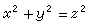 中国古代数学书《周髀算经》中曾经提到“勾广三、股修四、径隅五”这个三边都是正整数的直角三角形,因此,已经知道方程(6)的一组正整数解x=3, y=4,z=5。古希腊数学家毕达哥拉斯也给出了方程 (6)的一些正整数解。至少在16世纪以前,已经给出了方程(6)的全部正整数解。若(x,y)=d,由(6)有d│z,故可设(x,y)=1,此外,显然x和y一奇一偶。可证不定方程(6)满足(x,y)=1,2|x的全部正整数解可表为x=2αb,y=α2-b2,z=α2+b2,式中α、b为任意整数满足α>b>0,(α,b)=1,2凲α+b。