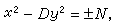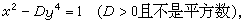 不妨设其中整数D>0不是平方数,N是一个正整数。1944年,T.内格尔用初等方法,完全决定了方程(11)的解。设(u,v)和(u1,v1) 是方程(11)的两组解,若