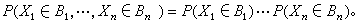 从随机变量(或向量)x1,x2,…,xn的独立性还可以推出:设Bk是xk取值的空间中的任意波莱尔集,k=1,2,…,n,则有