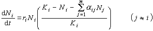 洛特卡-沃尔泰拉的竞争方程还可以扩充应用于多个物种的竞争: