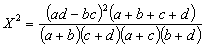 式中a,b,c,d,N,都是二个种的2×2列联表中的数值。