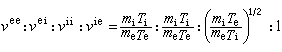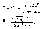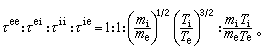 ,分别表示电子碰电子、电子碰离子、离子碰离子及离子碰电子的碰撞时间。对于热平衡的等离子体,严格的计算得到(假设离子是一次电离)