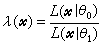 在观测值统计分布中的参量θ只有两个可能值 θ0和θ1的情况下,对于由观测值x判断参量是否为特定值θ0的参量检验问题,似然比是一个很有用的检验统计量,似然比的定义为