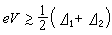 。这里 2墹是超导体的能隙宽度。当温度远低于超导体的临界温度时,对于一个电极是超导体S的隧道结,当eV<墹时除了在能隙上的激发电子可以通过结外,在能隙下的大量电子都不能通过结,因而电流很小;而当eV塼墹时能隙下的电子可以通过结,故电流陡然上升(如图中S-I-N 情况)。对于二个电极都是超导体的隧道结,I(V)曲线在