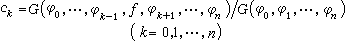 为格拉姆行列式。当诸φj两两正交时,сk简化为