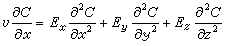 式中v 为水流中某一点(或单元水体)的纵向时均流速;x为沿水流的纵向坐标;y为沿水深的垂向坐标;z为沿河宽的横向坐标;C 为水流中某一点(或单元水体)被扩散物质的浓度,均为时间平均值;Ex、Ey、Ez分别为x、у、z三个方向的紊动扩散系数。一般的水流紊动不是各向同性的,所以三个方向的扩散系数并不相同。紊动扩散系数比分子扩散系数大数百倍,其量纲为L2T-1,L、T分别表示长度、时间的量纲。紊动扩散系数是紊动涡漩尺度与脉动强度的乘积,涡漩尺度与河流的水深h有关,脉动强度可用摩阻流速