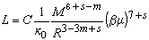式中α,n,m,s为某些参数,ε0、κ0为某些常数(其值可能依赖于恒星物质的分子量μ),则星体的平衡解构成下列的光度-质量-半径关系式: