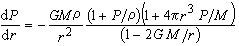 对于致密星,应当使用广义相对论的流体静力学平衡方程,在球对称情况下,它是: