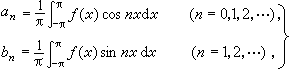式中ƒ是周期2π的可积函数,即ƒ∈l1(-π,π)。此时,由公式(2)得到的系数αn,bn称为ƒ的傅里叶系数。ƒ的傅里叶级数记为