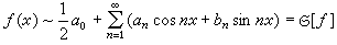问题往往是,给定函数ƒ,需要把它表示成三角级数(1)。J.-B.-J.傅里叶的建议是,利用公式(2),求出ƒ的傅里叶系数αn,bn,就得到傅里叶级数(3)。可以证明,只要ƒ满足一定的条件,那么ƒ的傅里叶级数σ[ƒ]收敛于ƒ。