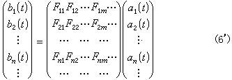 仍然把它看作矩阵元, {Fλ'λ}看成方形矩阵,{aλ(t)}和{bλ (t)}看成列矩阵,矩阵的行和列都是连续编号的。
