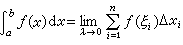 (x0=α,xn=b);λ为最大的Δxi;ξi为小区间Δxi上的任一点。