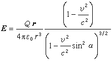 ,式中с是真空中的光速,α为矢径方向与速度方向之间的夹角。此场强的方向沿矢径,其大小与矢径大小r的二次方成反比。此电场伴随着运动电荷,亦称为运流场。