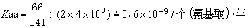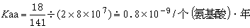 马与人有 18个氨基酸差异(图1), 高等哺乳动物的辐射进化约出现于8000万年前,如以此作为马与人的分歧进化时间,则从马到人的进化速率为: