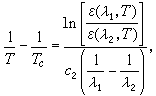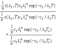 式中λ1与λ2是所取的两个波长;ε(λ1,T)与ε(λ2,T)是温度为T时,实际物体在波长λ1和λ2的光谱发射率,均小于 1;T是实际物体的真实温度(K);Tc是黑体的温度或实际物体的色温度或比色温度(K)。