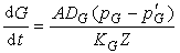 式中G为通过滞膜的气体量;t为气体成分通过滞膜的时间;DG为气体分子扩散系数;KG为气体的亨利定律的常数;A为交换面积;Z为滞膜扩散层厚度。令EG=DG/Z,则为