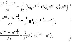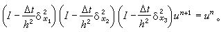 ,它是稳定的。通常称(6)是局部一维方法,它也是一种分步方法。上述方法的另一特点是把差分算子分解成为较简单的差分算子的积,因而又称算子分解法。