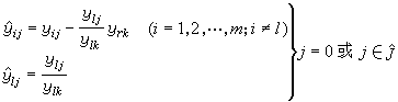 其余非基变量保持为零,则所有基变量非负,且基变量xBl=0,以xk取代xBl作为新的基变量,便得到一个新的基础可行解,其相应的目标函数值减少(xk>0时)或不变(当xk=0时)。为了继续进行迭代,须要计算它所对应的y0与yj等。由于新的基峺与B的不同仅在于用αk代替B的第l列,故不难由(8)式导出