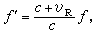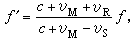 式中vM为媒质沿波源指向观测者方向的运动速度。如果波源或观测者的运动速度不沿着两者的联线方向,则上面各式中的vR和vR分别表示波源和观测者的速度在联线上的投影。