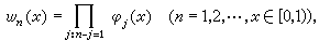 式中乘积是对一切满足n-j=1的j而取。系{wn(x)}同样以1为周期。例如,依二进制,13可表为13=23+22+20,故