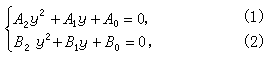 式中A0、A1、A2、B0、B1、B2均只含x不含y的多项式,则以B0乘(1),A0乘(2)相消之后得: