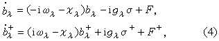 式中F、F+为无规力,σ、σ+为原子能级的下降与上升算符,Xλ为阻尼系数,gλ、g