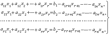 于是方程组(1)与仅含有前r个方程的方程组同解。可将前r个方程改写为