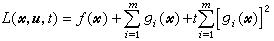 1943年R.库朗对于仅带一个约束等式g(尣)=0的问题,引入参数t>0,研究函数ƒ(尣)+t[g(尣)]2的平稳点尣(t)在t→∞时与原问题的关系。对于具有不等式约束gi(尣)≤0(i=1,2,…,m)的非线性规划问题,则作函数