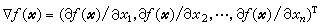 这里的T表示矩阵(或向量)的转置运算,墷ƒ(尣)表示ƒ(尣)在点尣上的梯度,即