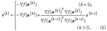 由(4)定义,其中Hk为n阶对称正定方阵;H1可以任意选取,但通常取H1=I;当k>1时,Hk由Hk-1和