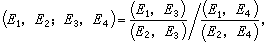 根据关于射影对应的基本定理,一维基本形(例如,点列)间的一个射影对应是由三对对应元素惟一地确定的。由此可以推知,若在一个射影对应中,一个一维基本形中的四个元素E1,E2,E3,E4依次对应于另一个一维基本形中的