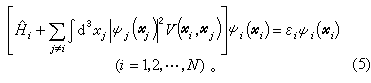 这是N个联立非线性微分积分方程组,称为哈特里方程。它比原来多粒子系方程(2)要简单些,但仍然只能用数值方法求解。解的过程是:首先假定平均场