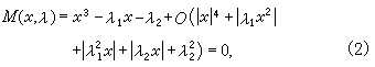 通过在参数空间(λ1,λ2)上观察(3)的解集个数的变化,可以回复到(2)的分歧行为,不难看出,尖点方程
