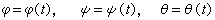 和Ox轴之间的夹角嗞 称为进动角;Oz轴和Oζ 轴之间的夹角θ称为刚体的章动角。嗞、嗞、θ都叫做欧拉角,因此,刚体定点运动的运动方程可用三个欧拉角的时间函数来表示: