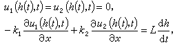 斯蒂芬问题是一个考虑到相转换的热传导问题。以一维的冰-水的热传导问题为例,假设u1、u2分别表示水温和冰温,x=h(t)表示相截面(自由边界),在它上面的水温和冰温为已知,且满足热平衡条件;