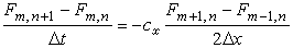 其中cx为波速,F为函数,x为空间自变量,t为时间自变量,m 是代表空间的下标,m 是代表时间的下标。依此式则由前一时刻的值,可以求得后一时刻的值。这称为显式差分格式。实践表明,问题并不这样简单。如果用一个单波解代入F(x,t),就不难发现,差分方程的解将随时间无限增长而与真解毫无相似之处。这种现象被称为“线性不稳定”。若时间也取中央差,则保持数值解的计算稳定性的充分条件是