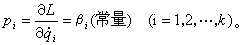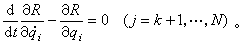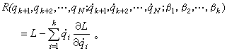 上式的形式同保守系统的拉格朗日方程一样,但是式中只有2(N-k)个阶,已降低2k阶,达到了降阶的目的。缺少的循环坐标可用下列积分求出
