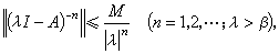 设线性算子A的定义域D(A)是Χ中的稠密集,A还是闭算子,如果当λ>β时A的预解算子(λI-A)-1(见线性算子)是Χ上的有界线性算子,并且成立不等式