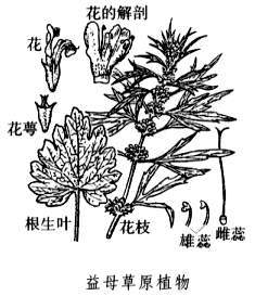 常用活血化瘀药。别名茺蔚、坤草、田芝麻、红花艾、红花益母草(四川)、四棱草(河北)、益母蒿、益母艾。始载于《神农本草经》。为唇形科植物益母草Leonurus heterophyllus的干燥地上部分(见图)。夏季茎叶茂盛、花未开或初开时采割,晒干或切段晒干。因其功宜于妇女,故名。