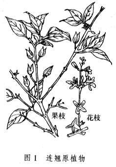 常用解表药。别名旱连子、大翘子、空壳、落翘。始载于《神农本草经》。为木犀科植物连翘Forsythia suspensa的干燥果实(图1)。因用其果,故名。