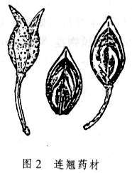 连翘多生于山野荒坡间,主要产于辽宁、河北、河南、山东、江苏、湖北、江西、云南、山西、陕西等地。秋季果实初熟尚带绿色时采收,除去杂质,蒸熟,晒干,习称青翘;果实熟透时采收,晒干,除去杂质,习称老翘。连翘果实呈长卵形至卵形,稍扁,长1.5~2.5厘米,直径0.5~1.3厘米。表面有不规则的纵皱纹及多数凸起的小斑点,两面各有一条明显的纵沟。顶端锐尖,基部有小果梗或已脱落。青翘多不开裂,表面绿褐色,凸起的灰白色小斑点较少;质硬;种子多数,黄绿色,细长,一侧有翘。老翘自顶端开裂或裂成两瓣,表面黄棕色或红棕色,内表面多为浅黄棕色,平滑,具一纵隔;质脆;种子棕色,多已脱落。气微香,味苦(图2)。