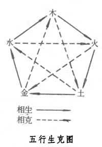 五行的相生是一行对另一行具有促进、助长和资生的作用,即“母”与“子”的关系;相克是指一行对另一行具有克胜和制约的作用(见图)。相生相克意味着自然界的生态平衡和人体的生理平衡,属于正常现象。其规律是“比相生,间相胜”。即五行以木、火、土、金、水之序首尾相连,生克不已。其相邻的各行之间为相生关系,相间的各行之间为相克关系。因此五行相生之序是木生火,火生土,土生金,金生水,水生木;相克之序是木克土,土克水,水克火,火克金,金克木。每一行都同时具有我生、生我、我克、克我四方面的联系。以木为例:我生者为火,生我者为水,我克者为土,克我者为金。相生和相克是事物不可分割的两方面,在相生之中寓有相克,相克之中也寓有相生。没有生就没有事物的发生和发展,没有克就没有事物的协调与变化。因此张景岳《类经图翼》说:“造化之机,不可无生,亦不可无制。无生则发育无由,无制则亢而为害。”
