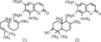 化学性质根含倍半萜化合物,有Farnochrol(1)和Drimartol A、B(2)[1]。此外尚含叶绿素、胡萝卜素类物质(Carotenoids)、酚类和花青甙(Anthocyanin)[2]。