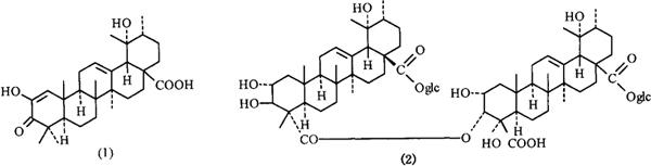 插田泡(R.coreanus)含28β-D Glucopyranosyl 2α,3β,19α,23-tetrahydroxyurs-12-en-28-oate[6]及其双分子化合物插田泡甙F1(Coreanoside F1)(2)[7]。